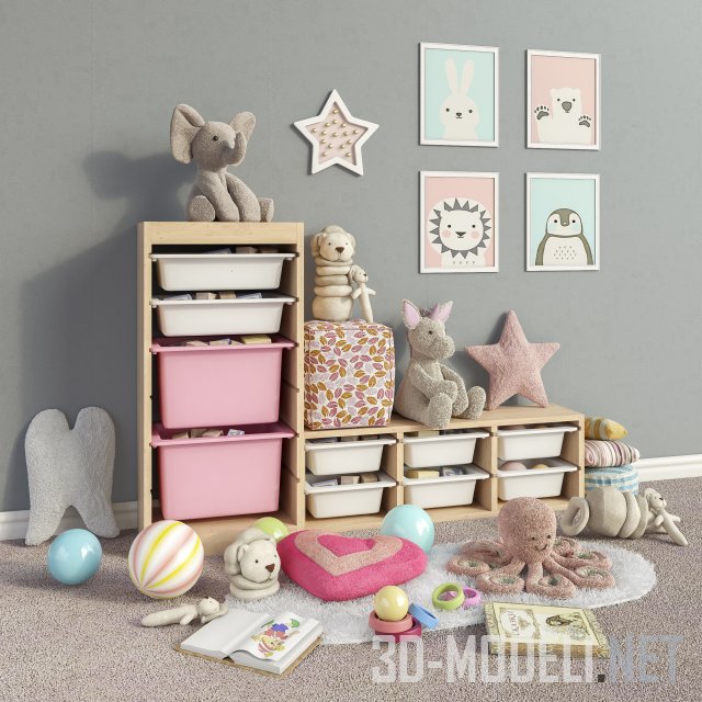 Набор для комплектации детской комнаты, состоит из мебельного стеллажа OSM от IKEA, а также предметов декора и игрушек. Реалистичная и подробная 3В модель высокого качества, все текстуры присутствуют.