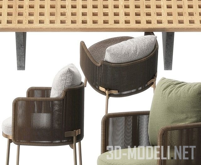 Современный комплект мебели для гостиной, столовой или кухни, от производителя из Италии Minotti. Набор содержит кресло Tape и стол Quadrado, которые идеально подходят друг к другу.