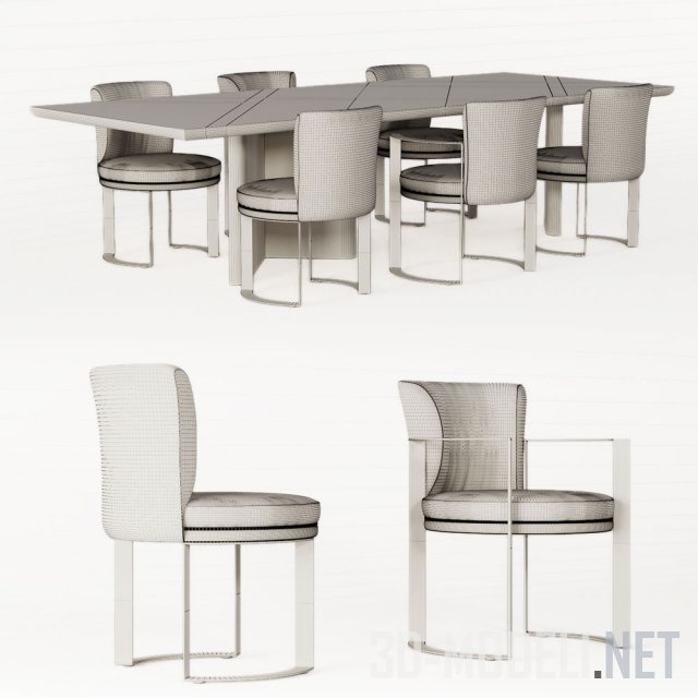 Набор мебели для современного и динамичного пространства, стол со стульями от бренда Fendi Casa. Стол Margutta прямоугольной формы, изготовлен из дерева, цвет черный орех. Удобные стулья Ripetta идеально подходят к этому комплекту.