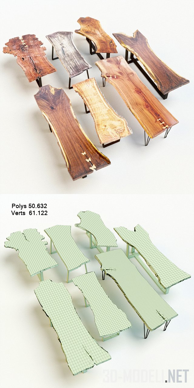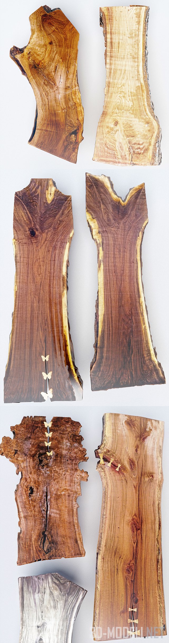 Оригинальный, натуральный вариант для меблировки помещения: комплект мебели из слэба. Предусмотрено семь различных вариантов дерева. Текстуры в архиве.