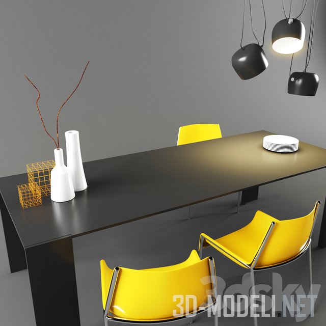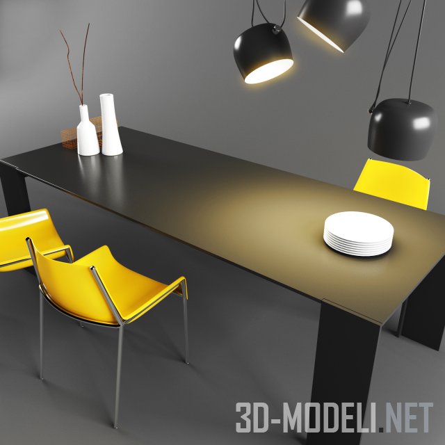 Стол Metallico Porro отличается легкостью верха и ножек, изготовленных из алюминиевого листа толщиной 12 мм. Подходит для интерьера жилых помещений и конференц-залов, Особая отделка черного цвета, бархатистая на ощупь, достигается каталитической покраской, высокой толщиной и последующими этапами полировки и вощения вручную. Стол эффектно смотрится в сочетании с ярко-желтыми стульями серии.