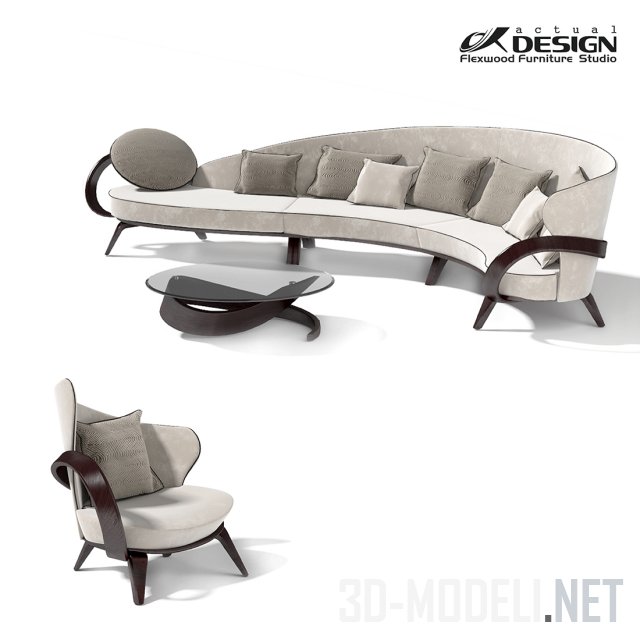 Комплект мебели для современной гостиной, серия Apriori A, от фабрики «modern design». В наборе диван Apriori A, кресло Apriori A, кофейный столик Brazo, зеркало, тумба.