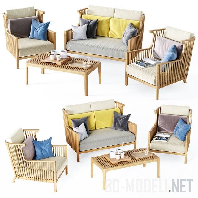 Дизайнер Nathan Yong для французского бренда Ligne Roset разработал коллекцию мебели Elizabeth. Использованные материалы: великолепный массив тика, натуральная отделка. Диван, кресло, столик смотрятся очень органично. доступны различные варианты обивки для мебели.