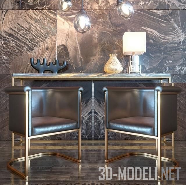 Набор элегантной мебели для гостиной – Dallas Set. В комплекте стол, стул, консоль, настольный светильник, декоративные аксессуары.