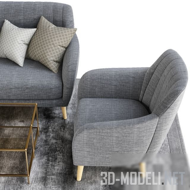 Мебель Sillon and sofa retro tela gris patas madera