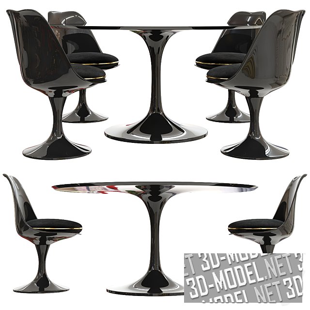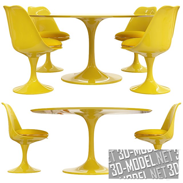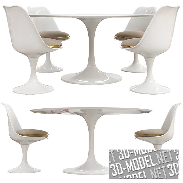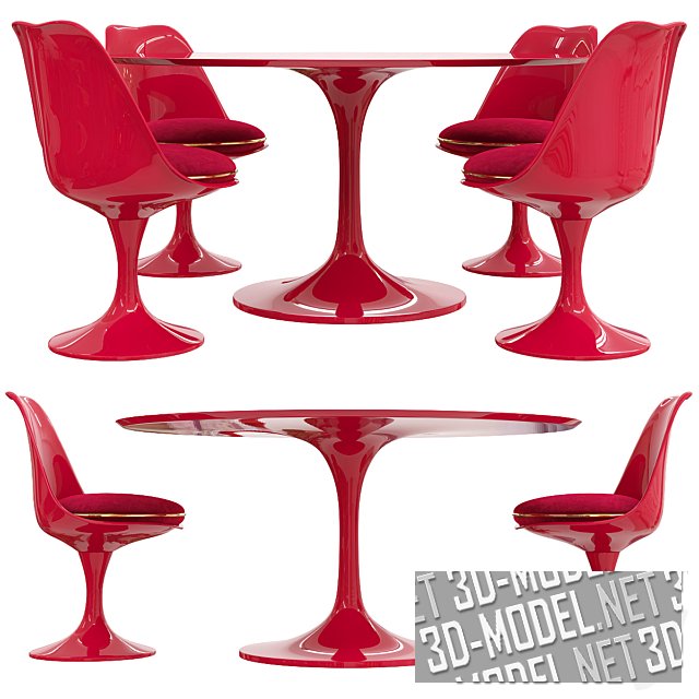 Мебель серии Tulip является классическим и элегантным решением для интерьера. Он включает в себя различные предметы, созданные дизайнером Эро Саариненом. Этот набор содержит стол и стулья.