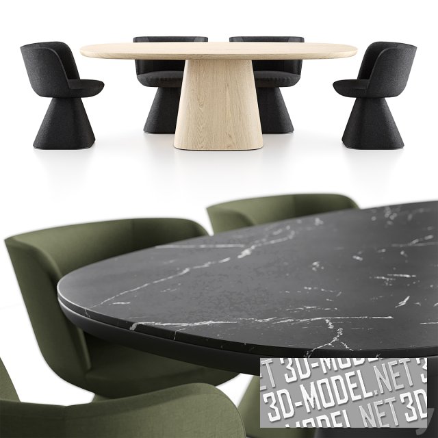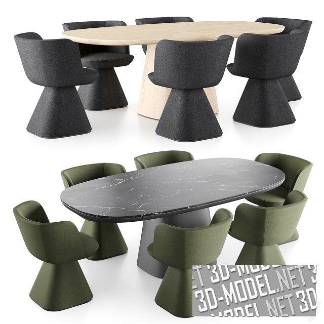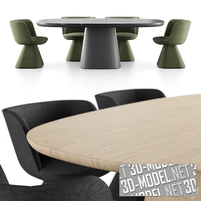Набор мебели B&B Italia Allure O' & Flair O' представляет собой элегантное и современное сочетание стола и стула, созданное с учетом стиля, комфорта и качества. Эти трехмерные модели представляют реалистичное воплощение оригинального продукта, что позволяет визуализировать их в любом интерьерном проекте.