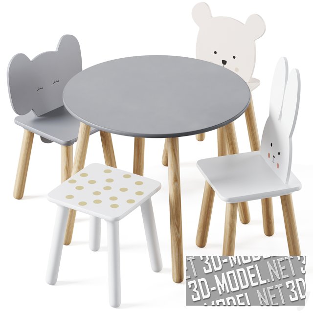 Милый и эргономичный комплект детской мебели из серии Animal от производителя Jabadabado. В наборе стол (59 x 59 x 44 см), стул bunny (26 x 26 x 58 см), стул teddy (26 x 26 x 49 см) и стул elephant (26 x 26 x 47 см)