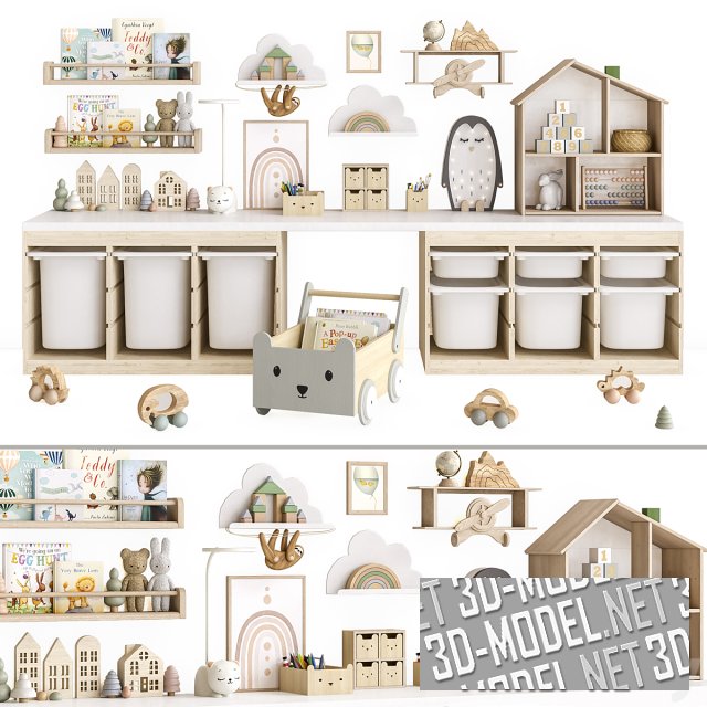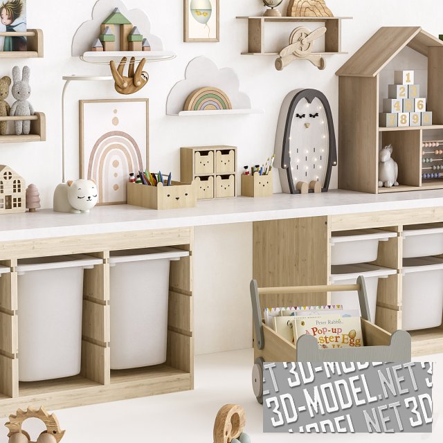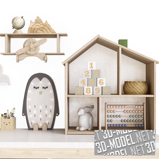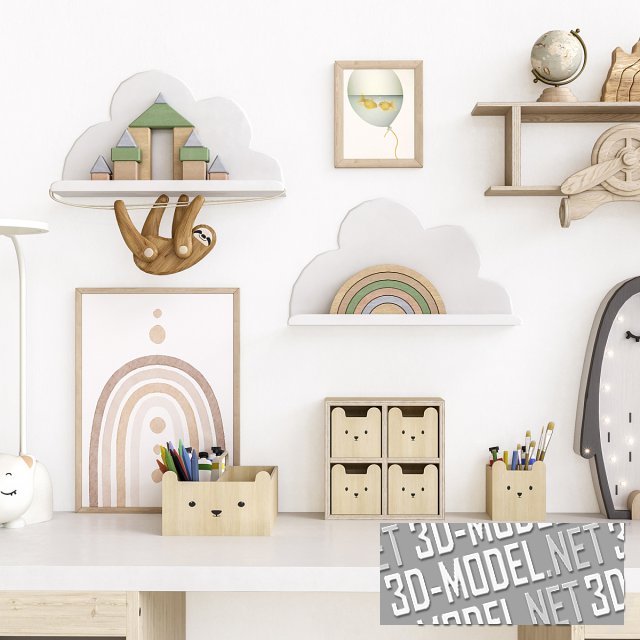 Высококачественная трехмерная модель выполнена с максимальным вниманием к деталям, успешно украсит и сделает иньереснее любую визуализацию детской комнаты.