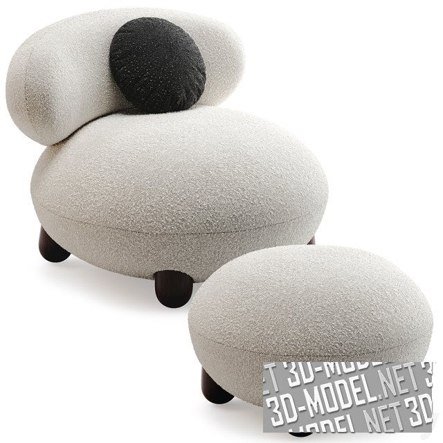 Привлекательный комплект, состоящий из кресла и пуфа Flock от Noom Home. Оруглые пышные формы мягкой мебели обеспечивают комфорт. Кресло и пуф Flock – отличные варианты для отдыха.