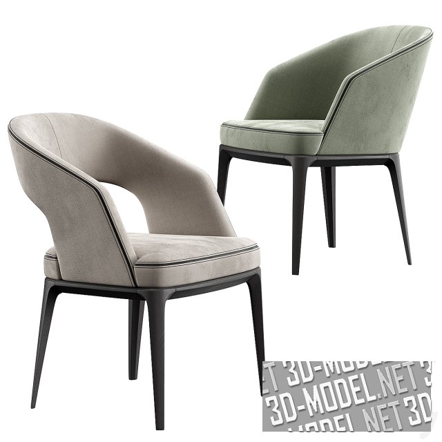 Круглый обеденный стол PLAYGROUND MODERN и стулья Pace Loom. Столешница с текстурой черного с белыми прожилками мрамора смонтирована на четырех тонких черных ножках. Подобная конструкция ножек и цвет - у основания стульев. Мягкое сиденье и огибающая спинка обиты велюром двух вариантов: бледно-фисташковым и цвета слоновой кости. В швы обивки интегрирован темный декоративный кант. В модели стула со светлой обивкой в спинке выполнен большой вырез в области поясницы сидящего.