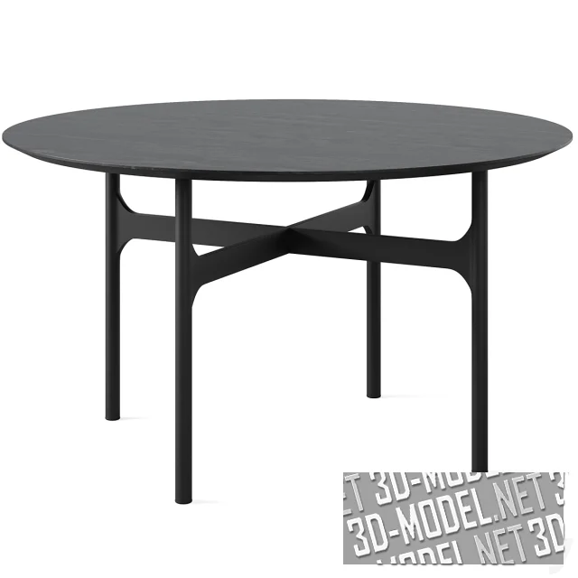 Круглый обеденный стол Colton и стулья Ami черного цвета от Rowico Home. Мягкое сиденье стула отделано черной кожей. Спинка стула выполнена в виде горизонтального гнутого элемента из массива дерева. Габарит стола: d135/h75см. Габарит стула: 48х47х80см.