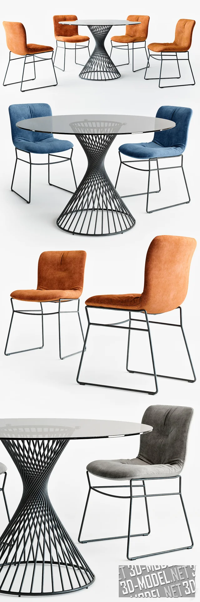 Легкий и современный комплект обеденной мебели от бренда Calligaris, в которых входит стул Annie и круглый стол Vortex. Стул отличает основание=салазки из металла и мягкая подушка в вариантах цвета обивки. Стол также с основанием из металла и стеклянной столешницей. Размеры Annie 510x585, H850, размеры Vortex D1200, H750.