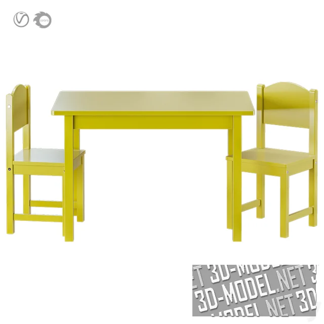 Простая и функциональная детская мебель из IKEA, серия SUNDVIK. Стол и стул предлагаются в пяти вариантах цвета. Размер стула: 28 х 29 х 55 см, размер стола 76 х 50 х 50 см.