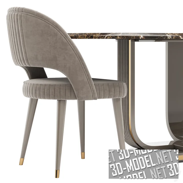 Набор элегантной обеденной мебели от Saber Jewels, коллекция CRYSTAL. В комплекте стол (размер 2100x1050x810мм) и стул (620x650x960). Высокополигональная (2395058) трехмерная модель отражает все ключевые характеристики оригинальной мебели и идеально подходит для реалистичных и детальных рендеров.