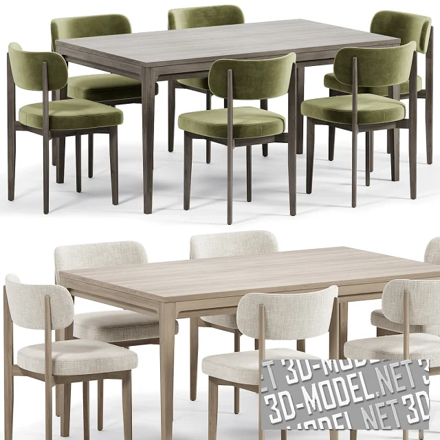 Набор простой современной мебели: обеденный стол Unit (DT100х160-UNT-RECT) и стулья Seam (CHR-SEAM). Комплекты представлены в нескольких декорах. Стол в двух вариантах: светлый дуб (ножки и царга стола, шпон на столешнице) и серовато-коричневый дуб. Стулья с четырьмя вариантами обивки на горизонтальной выгнутой овальной спинке и подушке сиденья (кремовый, коричневый или оливковый велюр, грязно-белый лен) и двумя отделками деревянных ножек под цвет отделки стола (светлый или серо-коричневатый дуб). Габарит стола: 160х100х75см. Габарит стула: 51х52х82/48см.