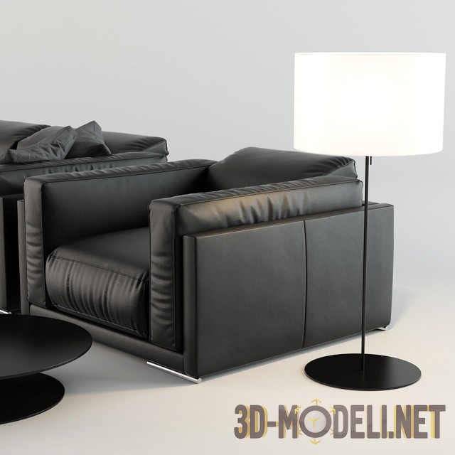 3D модель дивана «Spazio» от Erba Italia, в комплекте с креслом и несколькими журнальными столиками. Дизайн разработал Giorgio Soressi в 2007 году. Диван оснащен откидными спинками. Структуру составляет металлический каркас и система с эластичными ремнями. Поддержку осуществляют стальные ножки с покрытием атласный матовый хром. Чехлы могут быть изготовлены из ткани или кожи. Кресло отлично дополняет диван, а вариативность столиков позволяет создать комфортное и функциональное пространство. Красивая и качественная модель.