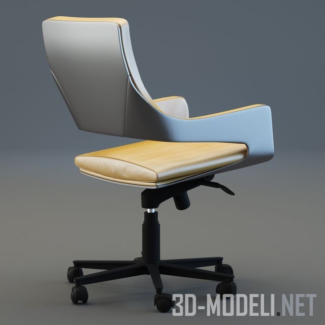 Элегантное кабинетное кресло Silhouette для современного интерьера. Стремительные, динамические линии обивки из светлой кожи прекрасно сочетаются с черным матовым цветом, использованным в отделке крестовины основания, шести роликов и рычагов механизма. Из–за отсутствия непосредственного сопряжения спинки и сиденья создается ощущение, что спина «парит». Дизайн кресла разработан Luca Scacchetti.