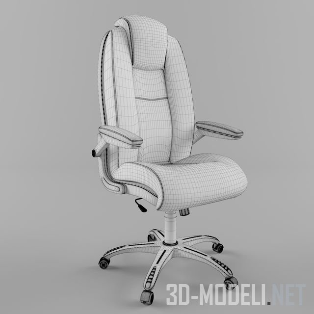 Массивное офисное кресло на хромированной металлической основе с роликами. На спинке и сиденье строчкой разделены различные зоны, для более комфортной посадки. Подлокотники, высота установки сиденья и угол наклона спинки - регулируемые. Виниловая обивка кресла - цвета умбры.