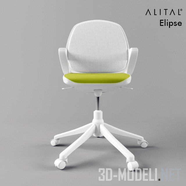 Современный офисный стул Alital Elipse. Стул белого цвета, с зеленым мягким сиденьем.