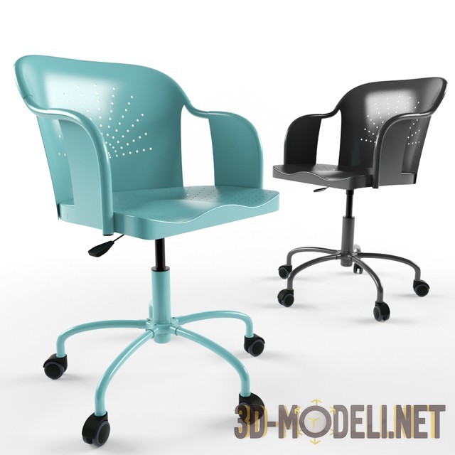 3d-модель современного рабочего стула от Ikea, представленная в двух цветовых вариантах: яркий бирюзовый и спокойный серый. Высота сиденья стула регулируется, обеспечивая максимальный комфорт. Резиновое покрытие колесиков обеспечивает плавное движение на напольном покрытии любого типа. Колесики автоматически блокируются, когда стул не используется.