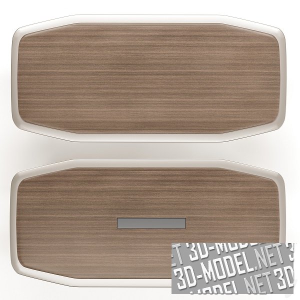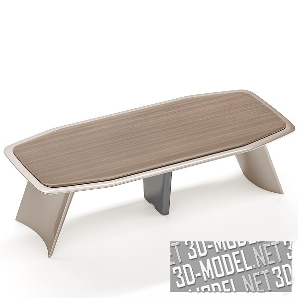 Современный трех-опорный стол для обедов и конференций Kano FMG40 от Gramy, с комбинированной столешницей SURTECO. Столешница - многоугольная, с закругленными углами, двухслойная. Основная поверхность, чуть меньшая - с текстурой дерева. Нижняя подложка, чуть большего размера - однотонная, светло-бежевая, глянцевая, с зауженной сглаженной кромкой. Три опоры сложных обтекаемых криволинейных форм напоминают детали дорогих яхт и автомобилей. Офисные принадлежности и гаджеты на четыре персоны, четыре уютных офисных кресла на роликах, с мягкими сиденьями, подлокотниками и спинками, с песочными обивками, готовы принять участников небольшого рабочего совещания в современном офисе.