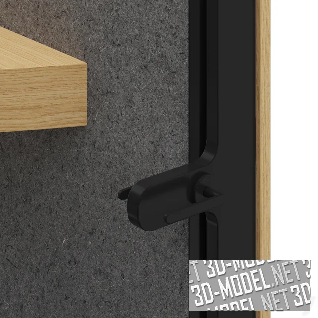 В конструкции предусмотрена светодиодная подсветка, вентиляция, кондиционирование и розетка электропитания. Представлено две модификации продукта - со стеклянной задней стенкой кабинки и с задней стенкой, отделанной серой шумоизоляцией. Створка двери выполнена из прозрачного материала с минималистичной черной ручкой.