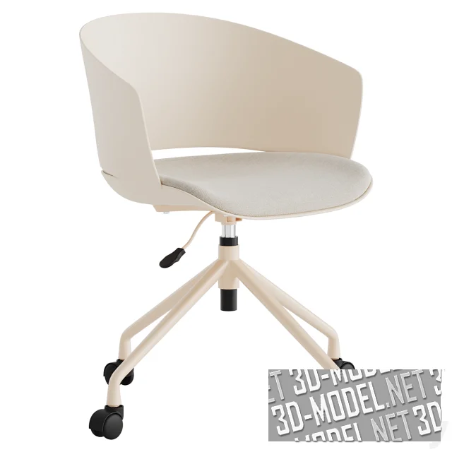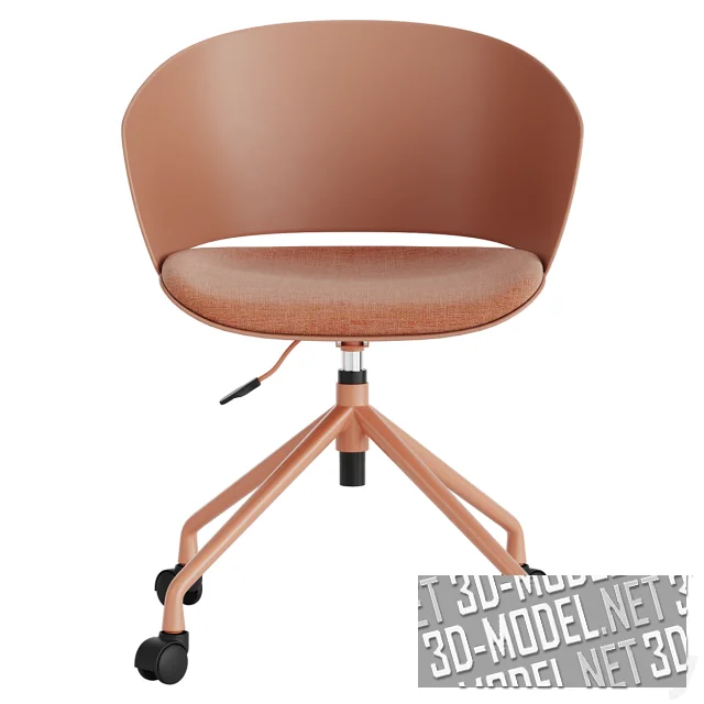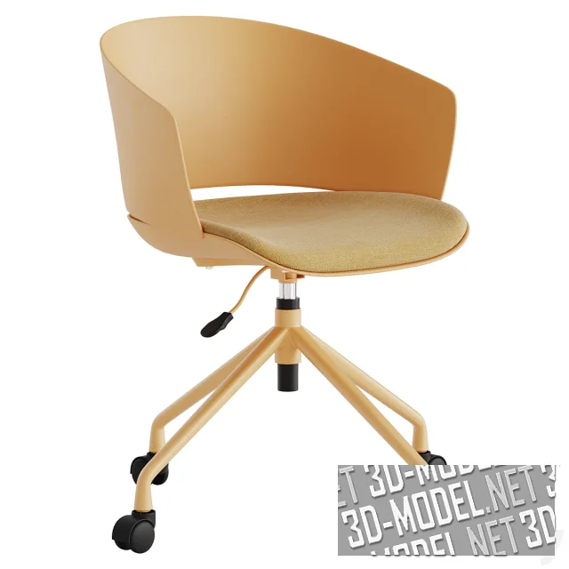 Современный мобильный офисный стул Ashley, на крестовине с четырьмя роликами. Огибающая невысокая спинка и основа выполнены из плотного гнутого матового материала. Крестовина выкрашена в цвет спинки и текстильной обивки мягкой подушки сиденья. Представлено пять декоров: белый, черный, терракотовый, бледно-желтый, оливковый. Габарит кресла: 58,3х58х78,4см.