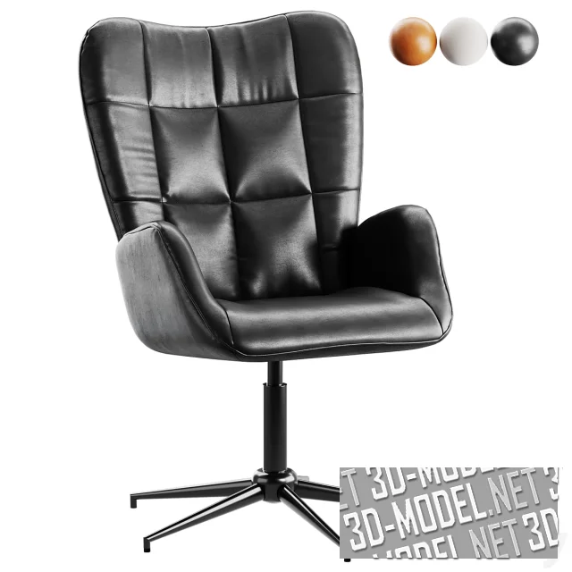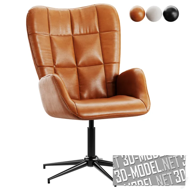 Современное офисное вращающееся кресло Iris Swivel на черной металлической крестовине. Корпус с высокой скругленной спинкой, декорированной клетчатой прострочкой, невысокие подлокотники и сиденье объединены в общую конструкцию с мягкой обивкой. Обивка представлена в трех вариантах: светло-серый текстиль, оранжево-коричневая кожа, черная кожа. Габарит модели: 123х110х171см.