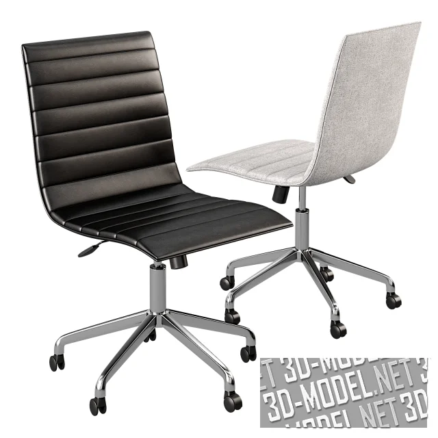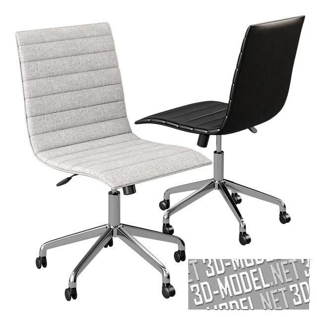 Легкое мобильное офисное кресло на роликах - Noir Task от Global Allies. Эргономичная спинка и сиденье выгнуты из одного прямоугольного куска. Нетолстый пенополиуретановый слой под обивкой разделен на поперечные сегменты, создавая интересный паттерн. Хромированная крестовина с газовым лифтом имеет пять черных нейлоновых роликов, механизмы управления высотой сиденья и наклона спинки. Обивка представлена в нескольких вариантах: зеленого, бирюзового, черного, белого в мелкую темную точку цвета.