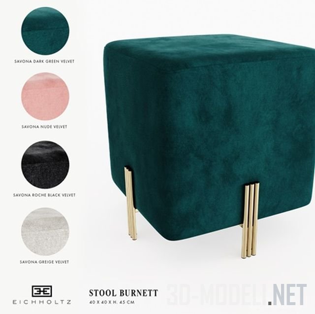Бархатная обивка в вариантах цвета, плавные изгибы и дизайн в стиле модерн середины прошлого века позволяют Burnett внести ретро-нотки в интерьер и сделать пространство еще более комфортным и красивым. Размеры пуфа: 40 x 40 x H. 45 см.