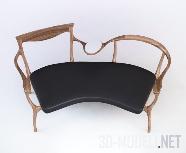 Полукруглая банкетка от итальянского производителя Ceccotti. Банкетка с фигурной спинкой и обтянутым темной кожей сиденьем. Каркас выполнен из древесины вишни или американского ореха.