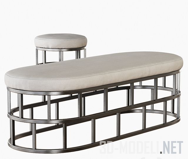 Набор мебели, пуфик и банкетка Riviera. Размер банкетки: 50 x 135 x H.41 см, размер пуфа: 40x H. 41 см.