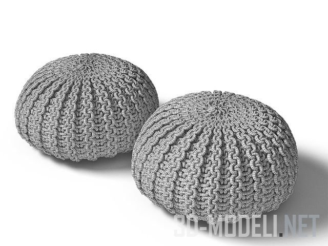 Пара вариантов вязаных пуфов (формой напоминают панцирь морского ежа). Крупная вязка делает пуфы очень уютными. Цвета серый и черный.