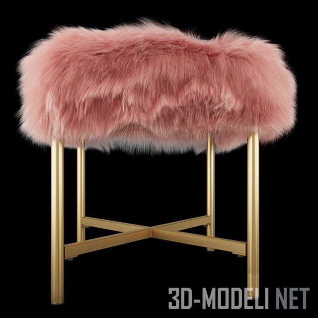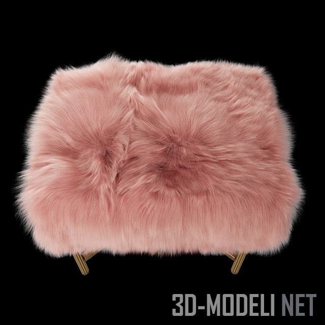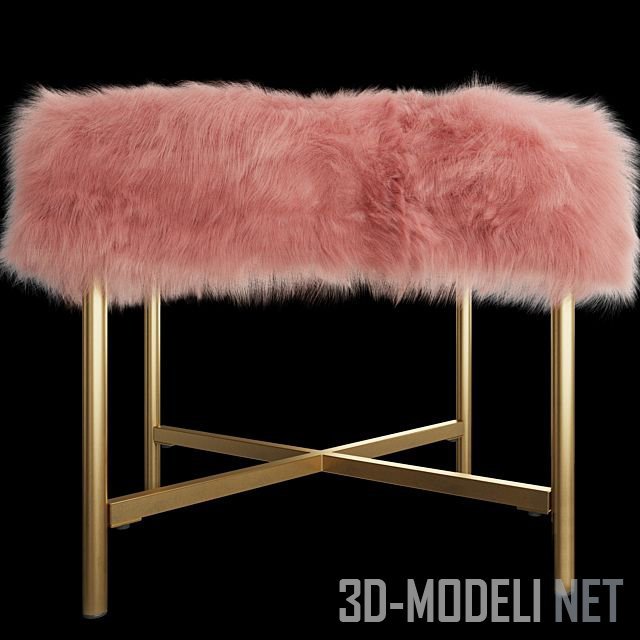 Современный гламурный квадратный пуф от HomePop с сиденьем из длинноворсового розового меха и ножками из золотистого металла. Габарит: 45,72х48,26х40,64см.