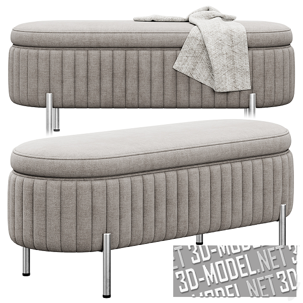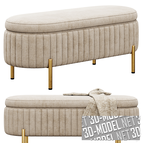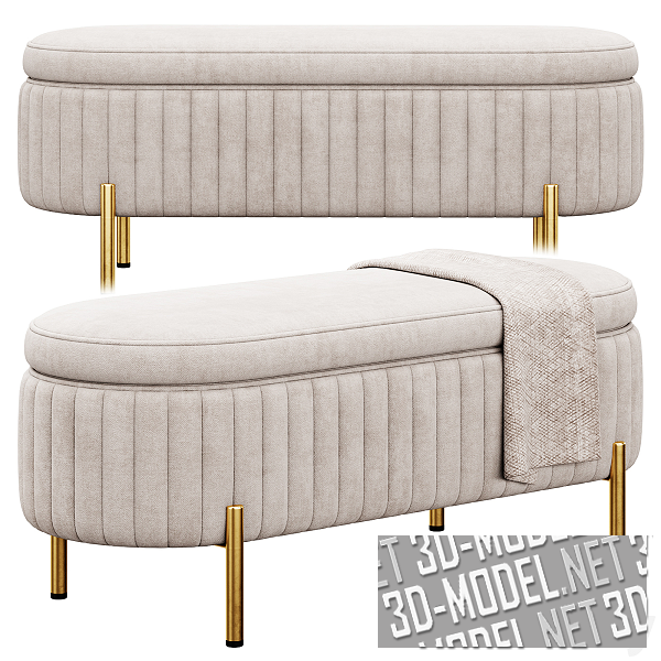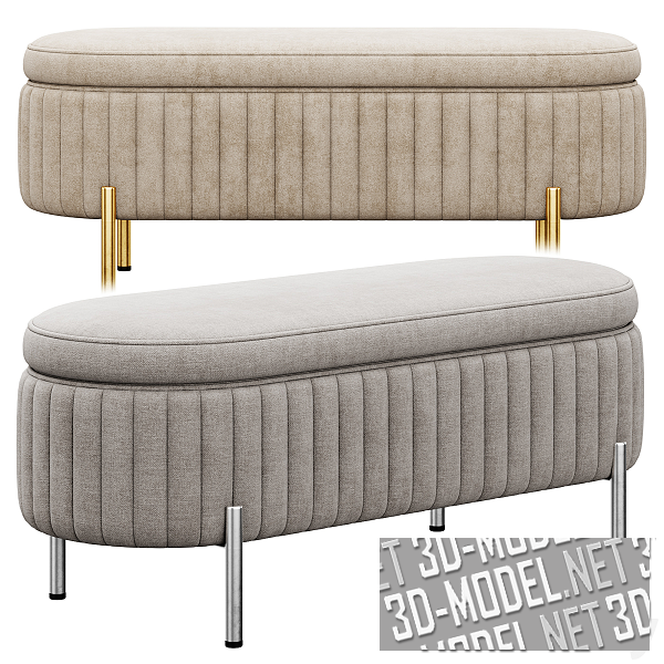 Два варианта элегантной банкетки Jennifer Taylor Home. Банкетка предлагается в вариантах цвета и отделки (золотистые или хромированные ножки, серая или бежевая ткань обивки), а также с пледом и без него. Размеры банкетки без пледа: 1230 x 480 x 500 (poly: 38984), с пледом: 1230 x 540 x 571 (poly: 49470).