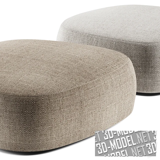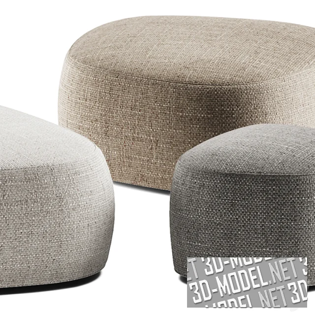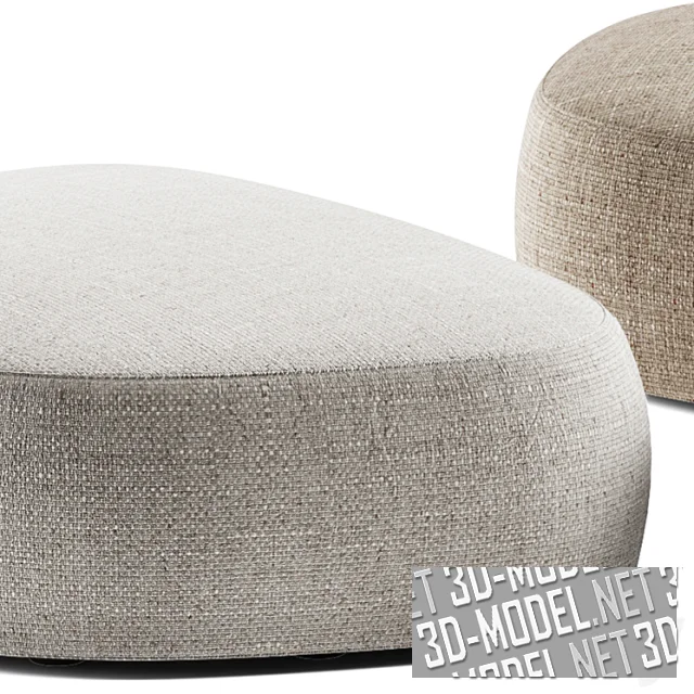 Современные пуфы из серии PIERRE. Пуфы трех размеров неправильной формы, напоминающей камни. Обивка неярких тонов украшена декоративной строчкой, подчеркивающей округлость пуфа. Размеры: