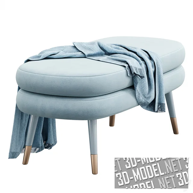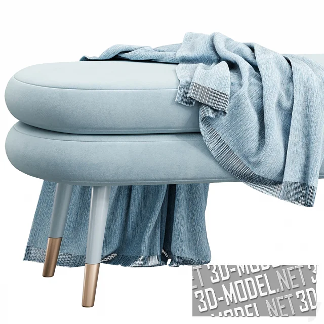 Современная мягкая овальная скамья Marshmallow от Royal Stranger, выполнена в стиле нео-классика. Сиденье в виде двухслойной овальной подушки, смонтированной на деревянных ножках с бронзовыми наконечниками. Габарит скамьи: 114х53х48см. Цвет лака на ножках и цвет мягкой обивки (Vidar 943) бледно-голубого цвета. На поверхность наброшен плед из текстиля в цвет скамьи.