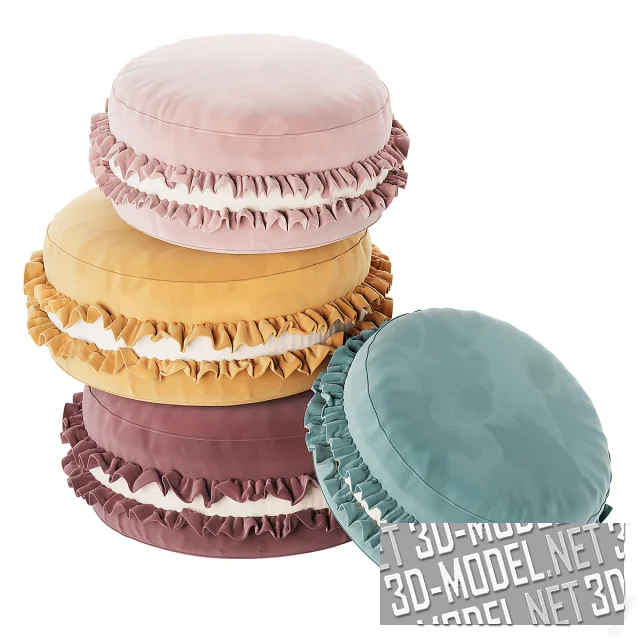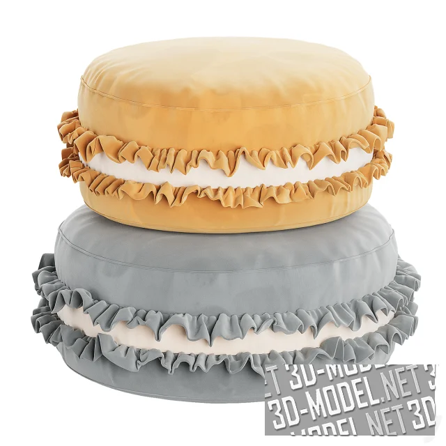 Мягкий круглый пуф-подушка в виде французского десерта макарон от польской фабрики Cozy & Dozy. Габарит изделия: d65/h30см. Цветную велюровую обивку дополняет белая вставка из «крема» вдоль середины боковой плоскости, обрамленной рюшами из обивочной ткани. Велюровая обивка представлена в пяти бледных пастельных цветах: зеленом, розовом, желтом, сером, красно-коричневом.