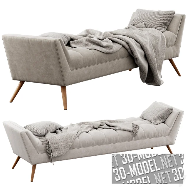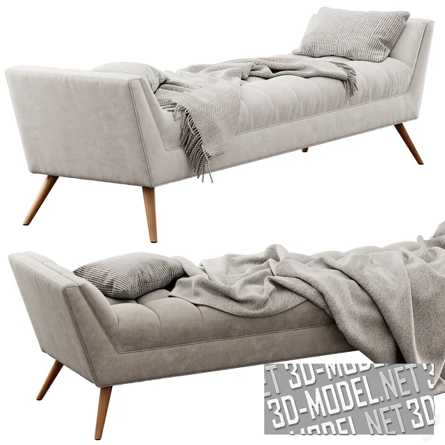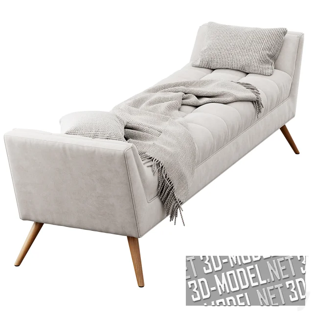 Современная банкетка Fiske от Ivy Bronx, с невысокими наклонными изголовьями по коротким сторонам. Мягкая плоскость декорирована простежкой, делящей плоскость на три ряда мягких квадратов. Слегка расходящиеся ножки деревянные. Представлены модели двух типоразмеров (190х51х51см и 190х64,9х54,5см), с небольшой разницей в обивке (светло-серая и серая с легким оттенком) и комплектацией пледами и подушками.