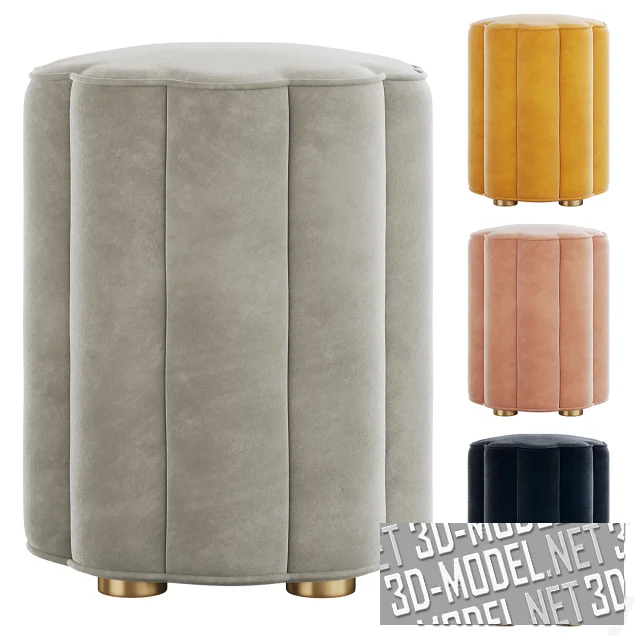 Современный пуф Adriana от Soho Home, с четырьмя невысокими круглыми золотистыми ножками. Верхняя плоскость выполнена в виде силуэта цветка с десятью скругленными «лепестками». Углубления между «лепестками» переходят в вертикальную прострочку на боковых поверхностях корпуса, создавая дополнительный декоративный эффект. Обивка представлена в четырех вариантах велюра: светло-сером, нюдовом, золотисто-желтом, черно-синем. Габарит пуфа: d44/h54см.