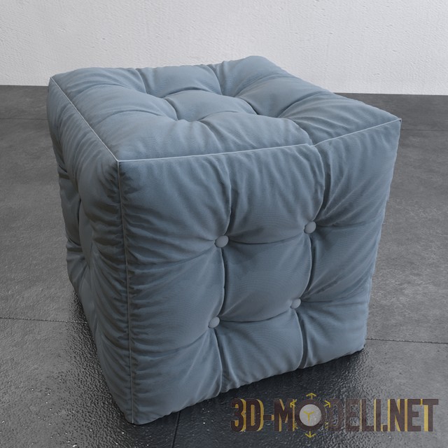 3d-модель интересной композиции, состоящей из нескольких разномастных пуфов. Может быть использована для моделирования интерьера уютной спальни или детской комнаты, как в группе (цвета прекрасно сочетаются друг с другом), так и по отдельности. Первый пуф бледно-оливкового цвета, круглый в сечении, сплющенный шар. Его диаметр составляет 860 мм. Второй в форме куба, с выпуклыми плоскостями, светло-серый. Третий пуф синевато-серый, с простежкой капитоне и слегка вогнутыми плоскостями. Их размеры: 500 х 500 х 500 мм. Дополняет композицию небольшое белое покрывало (драпировка) с квадратной прострочкой.
