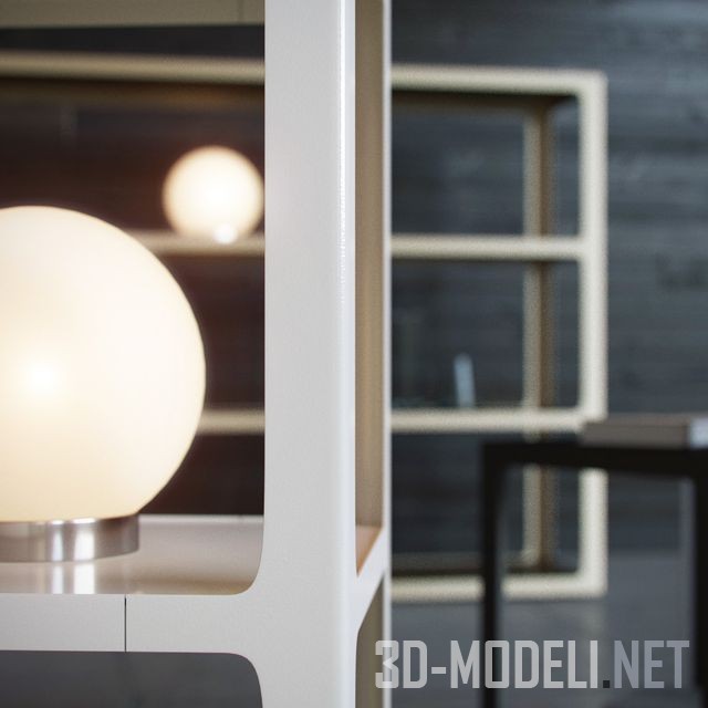 Интересный мебельный набор, в который входят стеллажи и кофейный столик, модель Sixty из каталога Day collection производства фабрики Rimadesio. В комплекте светильник и две вазы (все, что на рендере, кроме книг). Три варианта цвета (представлены на каждой модели, а так же в Multi/sub mat).
