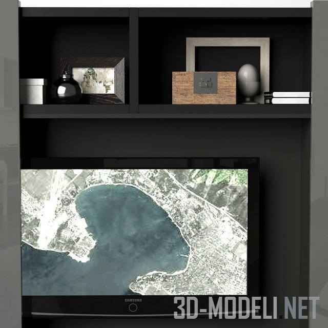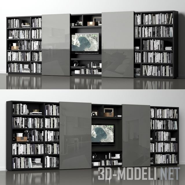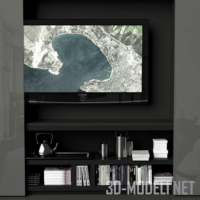 Современная система хранения для гостиной, Varenna DAY SYSTEM 19. Организованное пространство для телевизора, книг, декора и пр. Качественная 3d модель с текстурами.