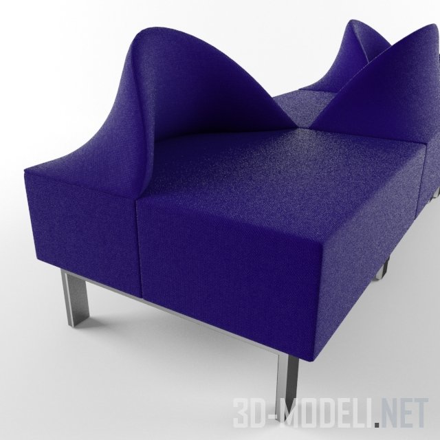 Большая двухсторонняя скамейка Tsunami от Allermuir. Предназначена для отдыха. Обивка темно-фиолетового цвета отлично гармонирует с формой спинки и сиденья.