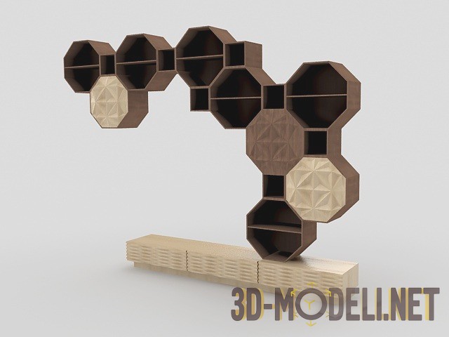3D модель секционнной системы хранения «Penelope», дизайн Tiziano Bizzotto. Модульные, деревянные полки, доступны в составе восьмиугольных и квадратных элементов, в двух размерах, которые могут быть соединены друг с другом и в сочетании с основаниями, с добавлением ящиков и дверей из других коллекций Bizzotto. Размеры: 359 х 37 х 231.