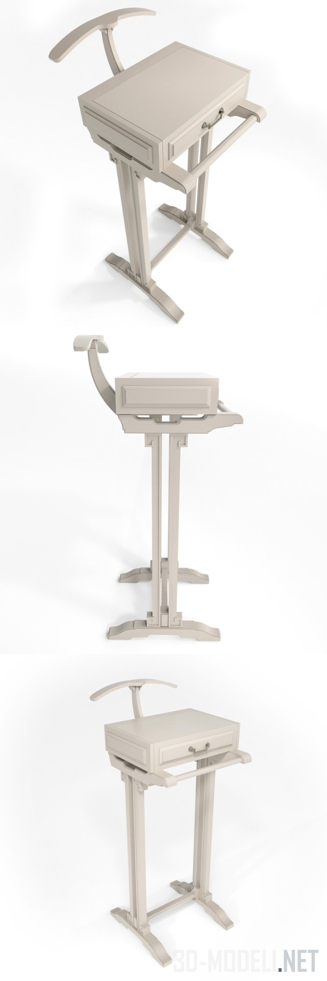 Напольная вешалка белого цвета выполнена в классическом стиле. Предназначена для мужского костюма, изготовлена из дерева, оснащена откидным ящиком для аксессуаров, Размеры вешалки: 493 x 595 x 1265 мм. Модель имеет название Mister Nort Milk, производителем является бренд Art Way, Россия.