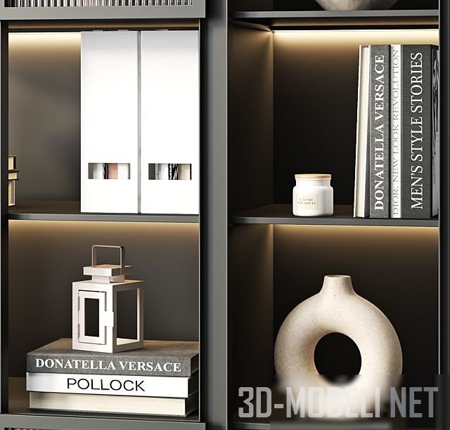 Трехсекционный стеллаж от бренда H&M. Стеллаж отлично подойдет как для интерьера современного кабинета, так и для других помещений. Предметы декора на полках стеллажа вносят дополнительный реализм. Размеры шкафа: 400 х 1050 х 2000 мм.