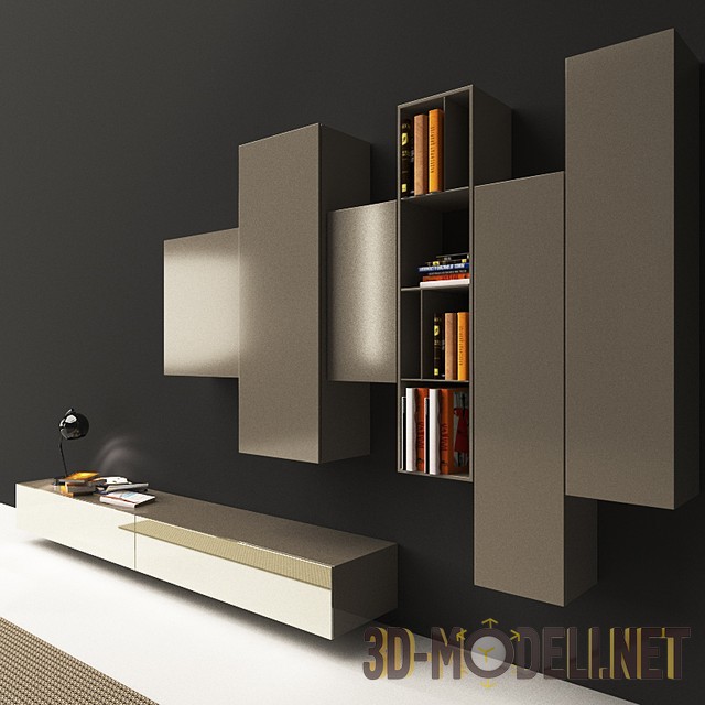 3D модель мебели для гостиной от San Giacomo, Италия. Гладкие поверхности и стекло, функциональная система полок и ящиков позволяет создать в пространстве гостиной современную, красивую и очень стильную мебельную группу. Текстуры модели не требуются. В архиве также присутствует файл fbx.