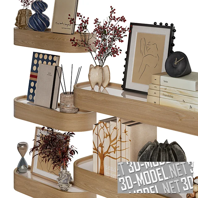 Настенные полки Epoch от Audo Copenhagen. Форма прямоугольная, углы скруглены. Полки отделаны дубовым шпоном. На поверхности расположены предметы декора: вазы различной формы, книги, аромадиффузор, песочные часы, подсвечник, картина и др. Epoch в стиле мягкого минимализма хорошо адаптируются к различным архитектурным стилям как для жилого, так и для коммерческого пространства.